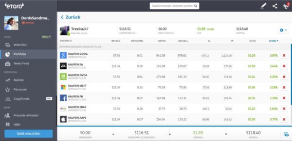 Jede Plattform, auf der man Aktien handelt, nimmt natürlich eine Gebühr für jeden Trade. eToro ist da nicht anders. Aber ziemlich schlau, was das gute Verstecken der Gebühren angeht. Die werden einem nämlich nicht ganz transparent bei jedem Trade angezeigt, sondern einfach direkt dem Trade negativ aufgelegt. So kann man es natürlich auch machen.