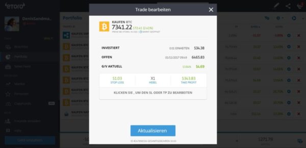 Setze ich also den Stop Loss auf 1 $ und der Kurs fällt soweit, dass mein Gewinn nur noch 1 $ beträgt, dann wird die Position automatisch geschlossen. Andersherum geht das natürlich, auch wenn man eine Verkaufen-Position eröffnet. Der eingestellte Stop Loss gilt immer aus der Sicht des Traders.