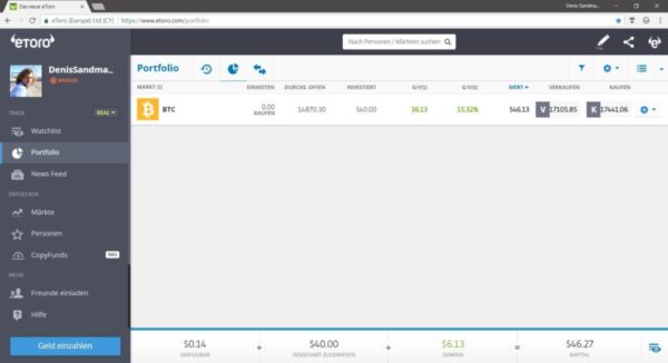 Zurzeit bin ich wieder aktiv mit Bitcoins. Ich sehe in Kryptowährungen zurzeit die größten Chancen. Mit 15 % im Plus kann ich mich auch nicht beschweren. Ich möchte so schnell wie möglich in Ethereum, Bitcoin Classic und anderen Kryptowährungen investieren.